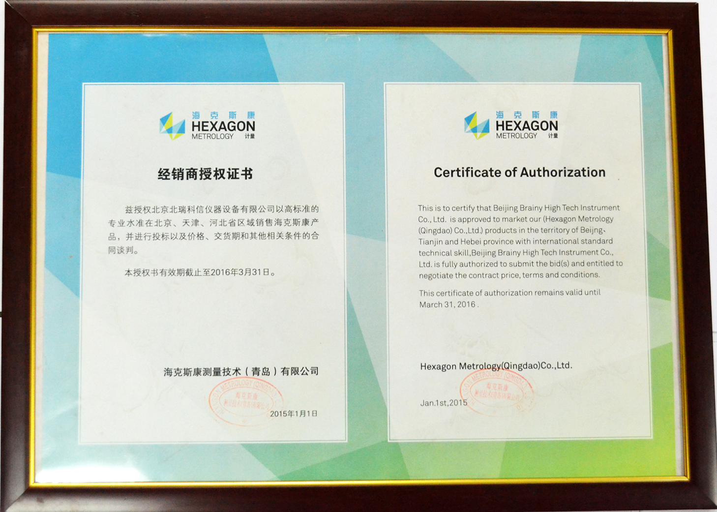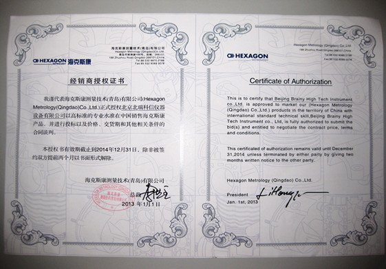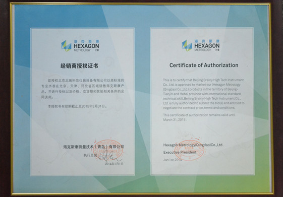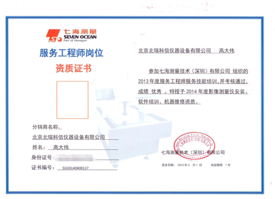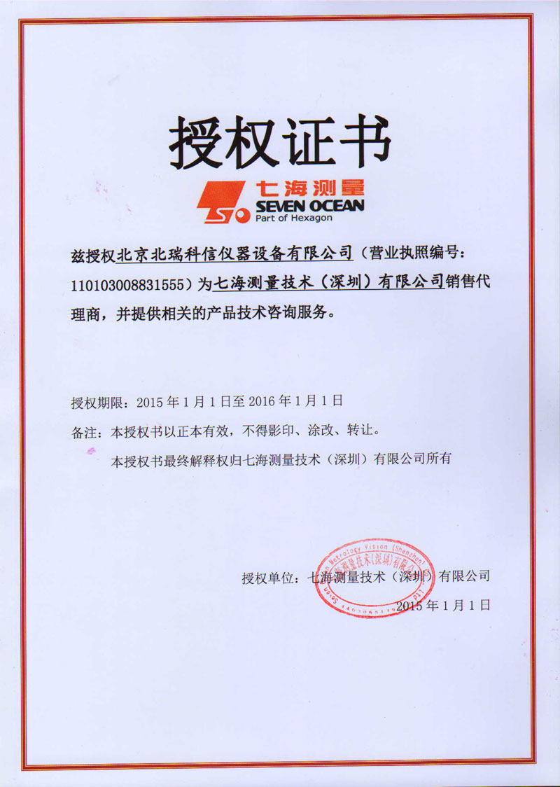 • 2015年七海影像測(cè)量?jī)x授權(quán)證書