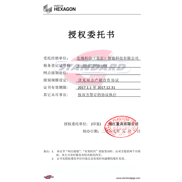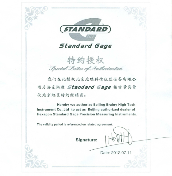 • STANDARD GAGE授權(quán)證書