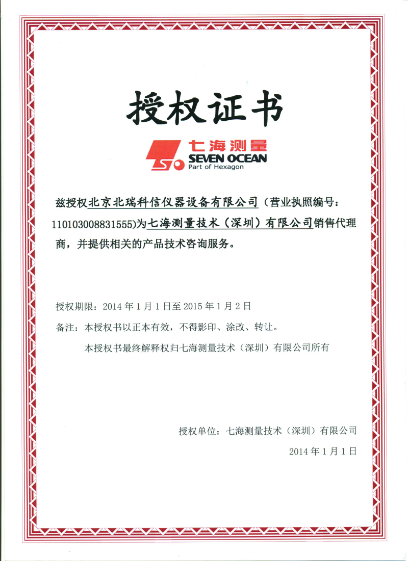 • 2014年七海測(cè)量授權(quán)證書