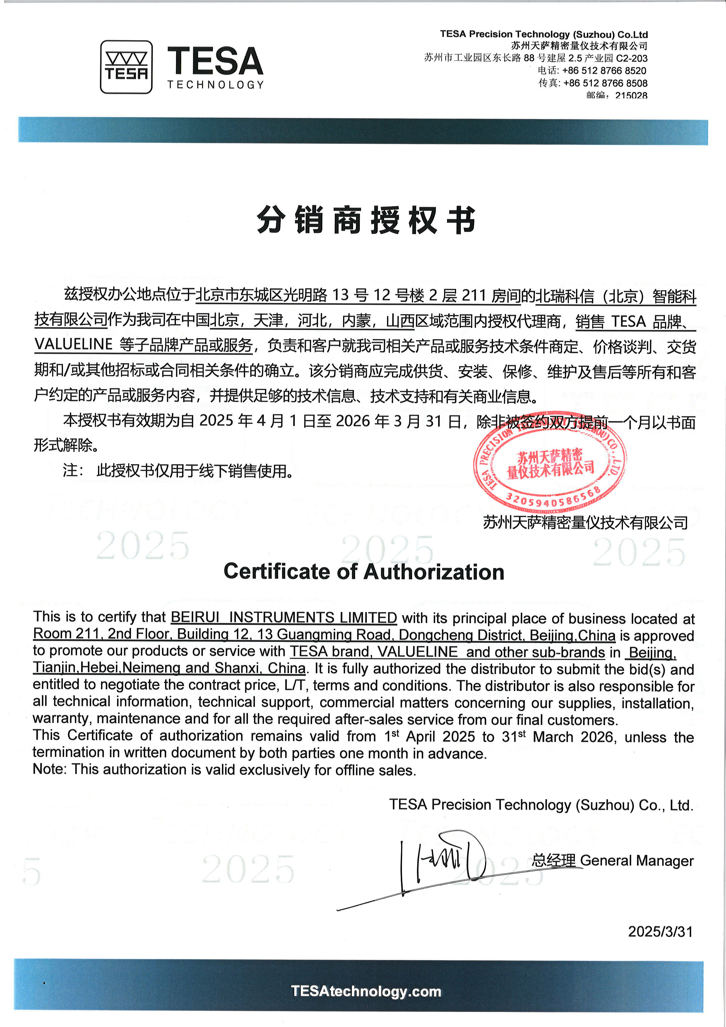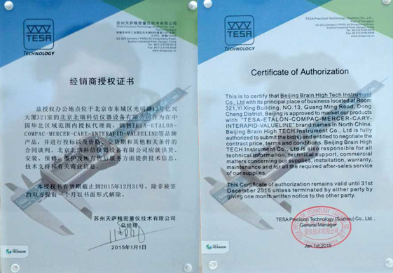 • 2015年TESA授權(quán)證書