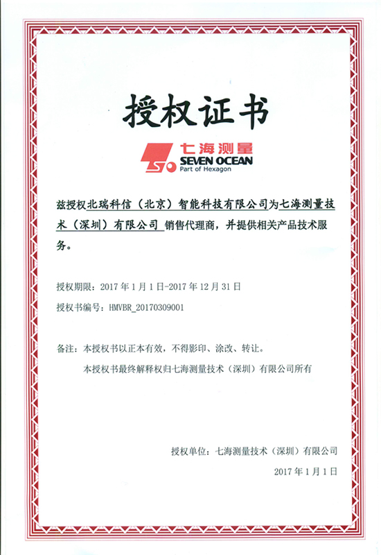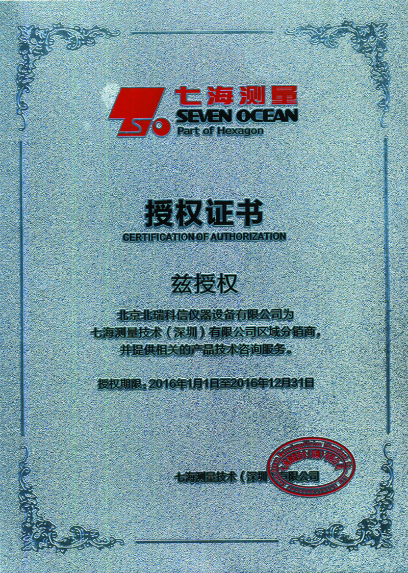 • 2016年七海測(cè)量授權(quán)證書
