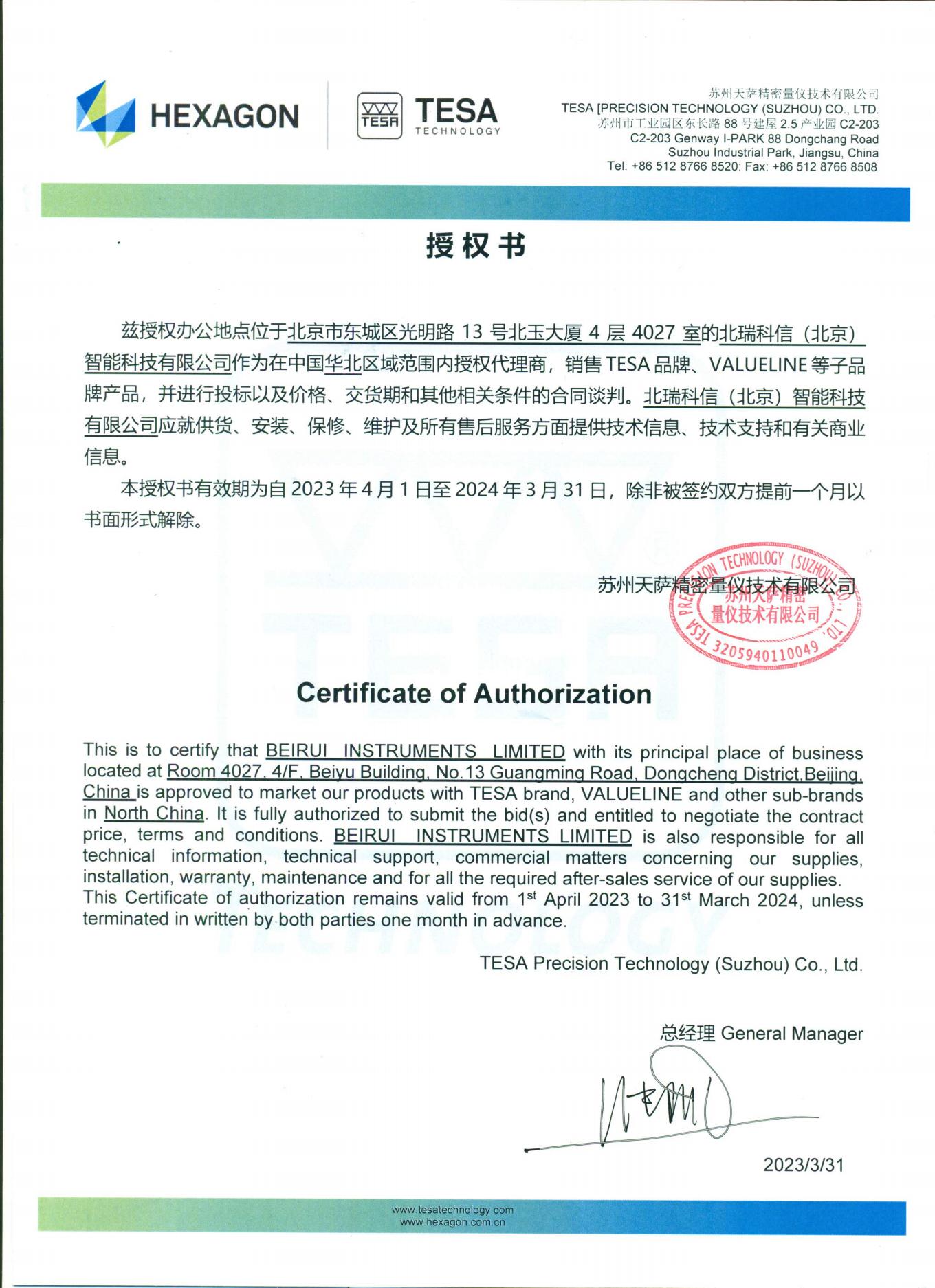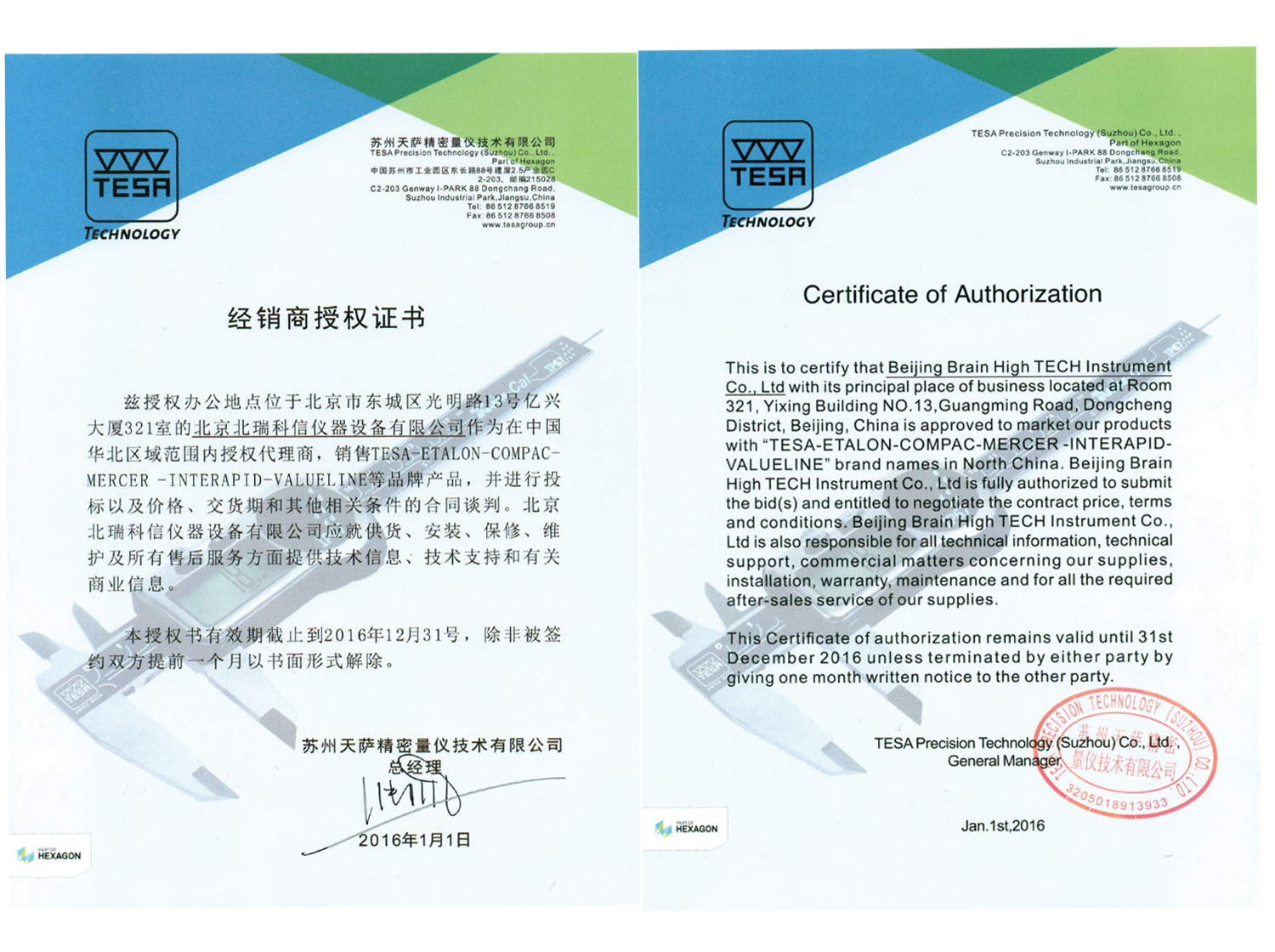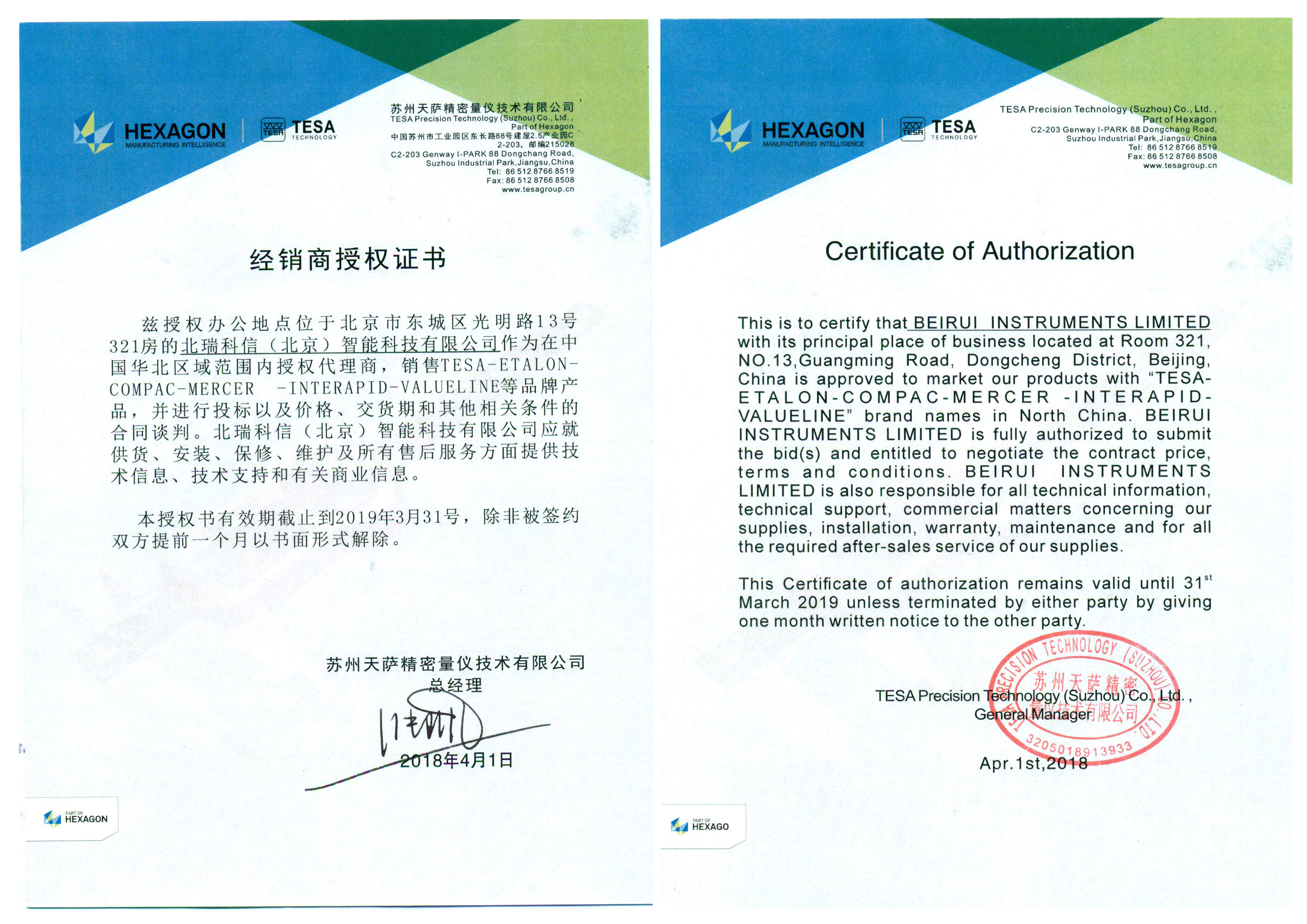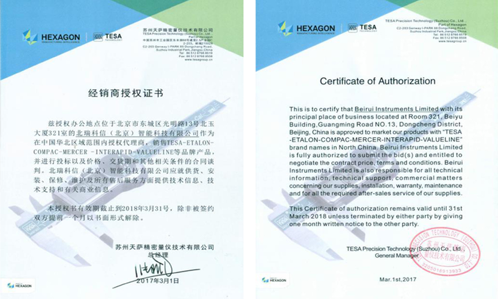 • 2016年TESA授權(quán)證書