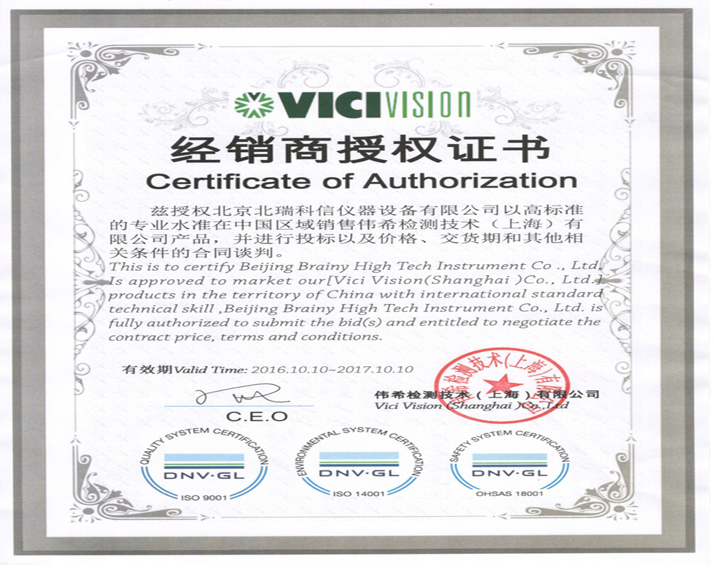 • 意大利VICI授權(quán)證書