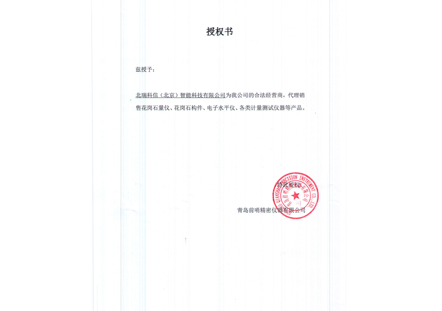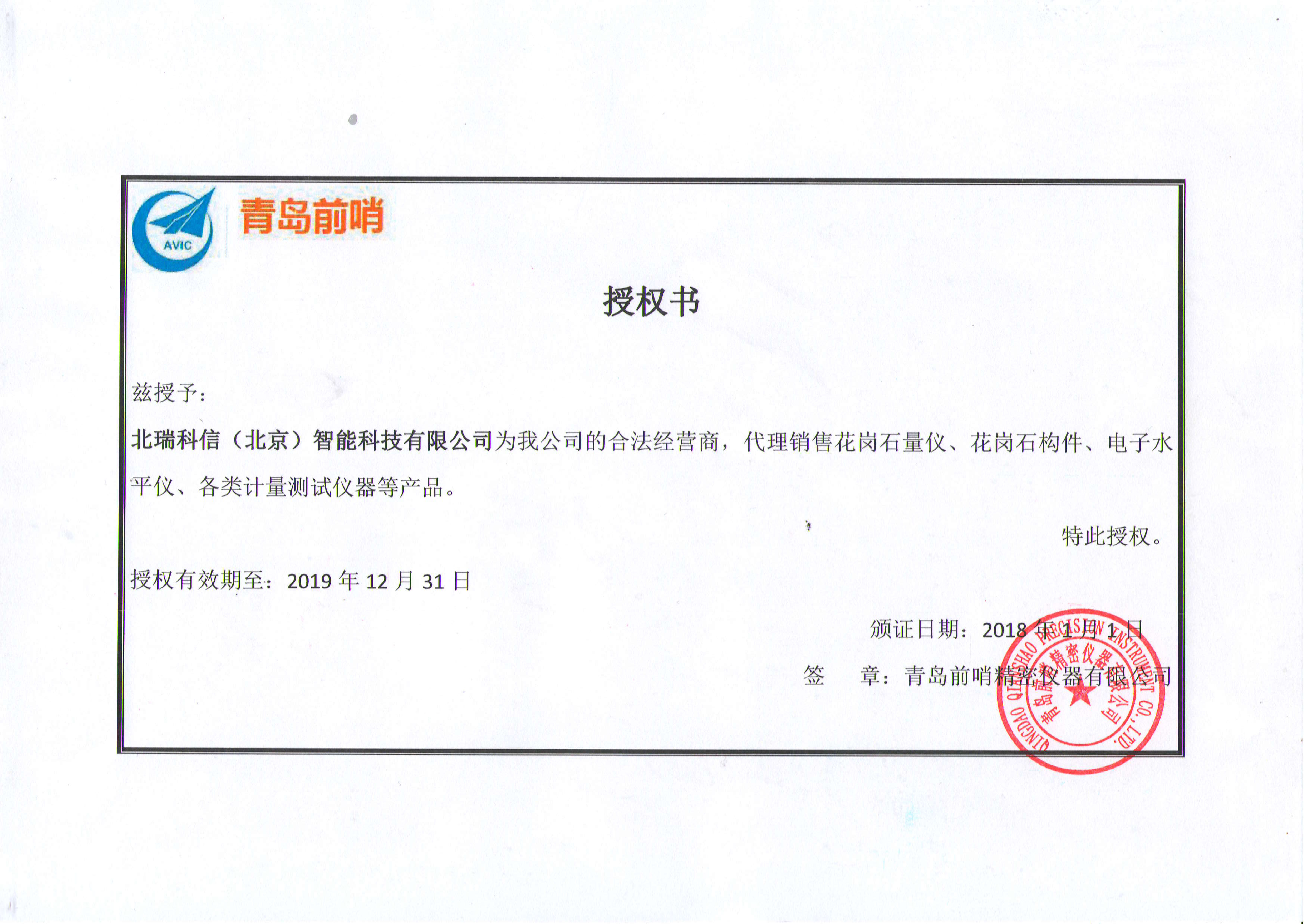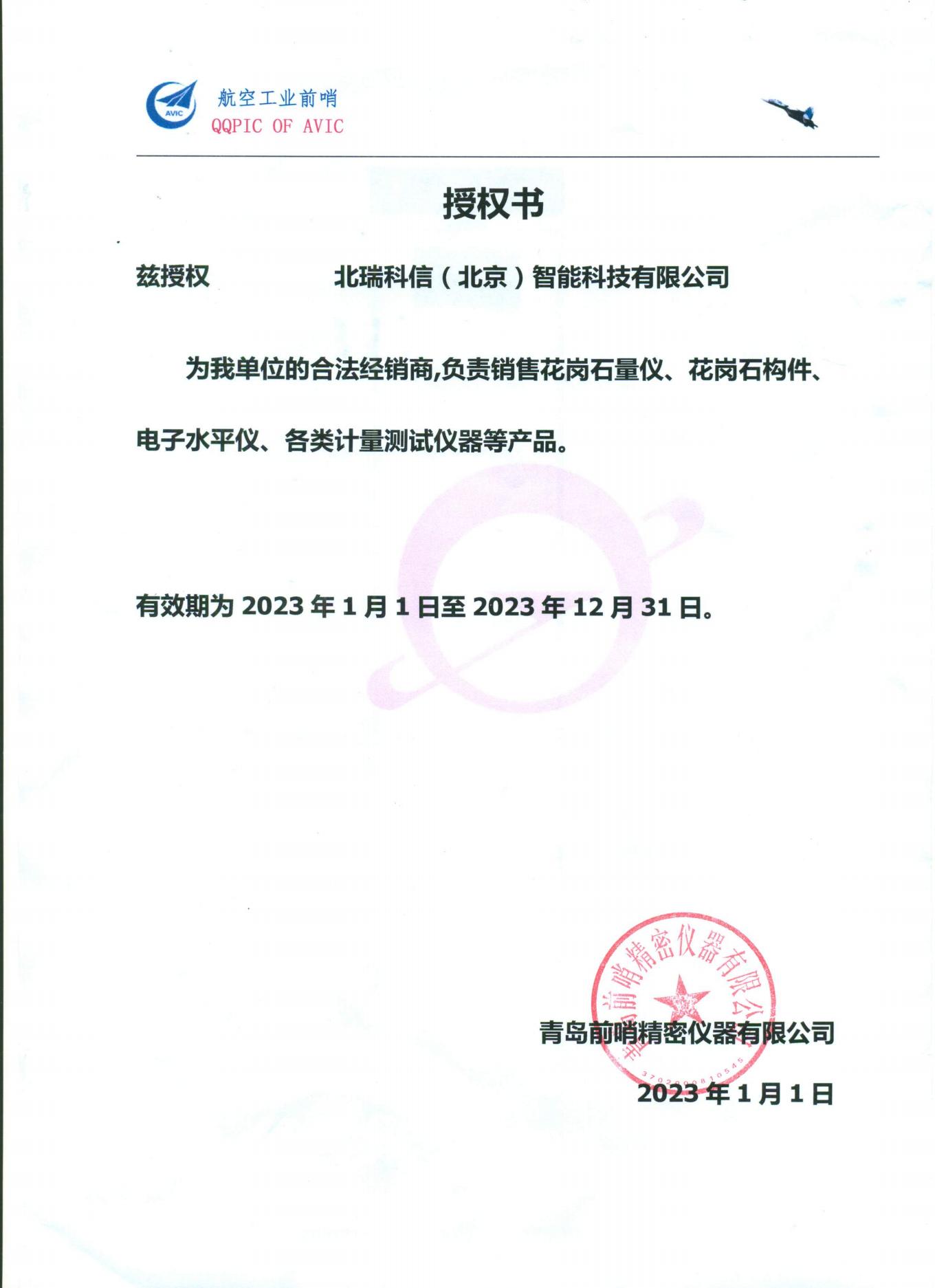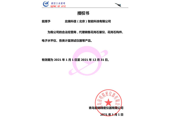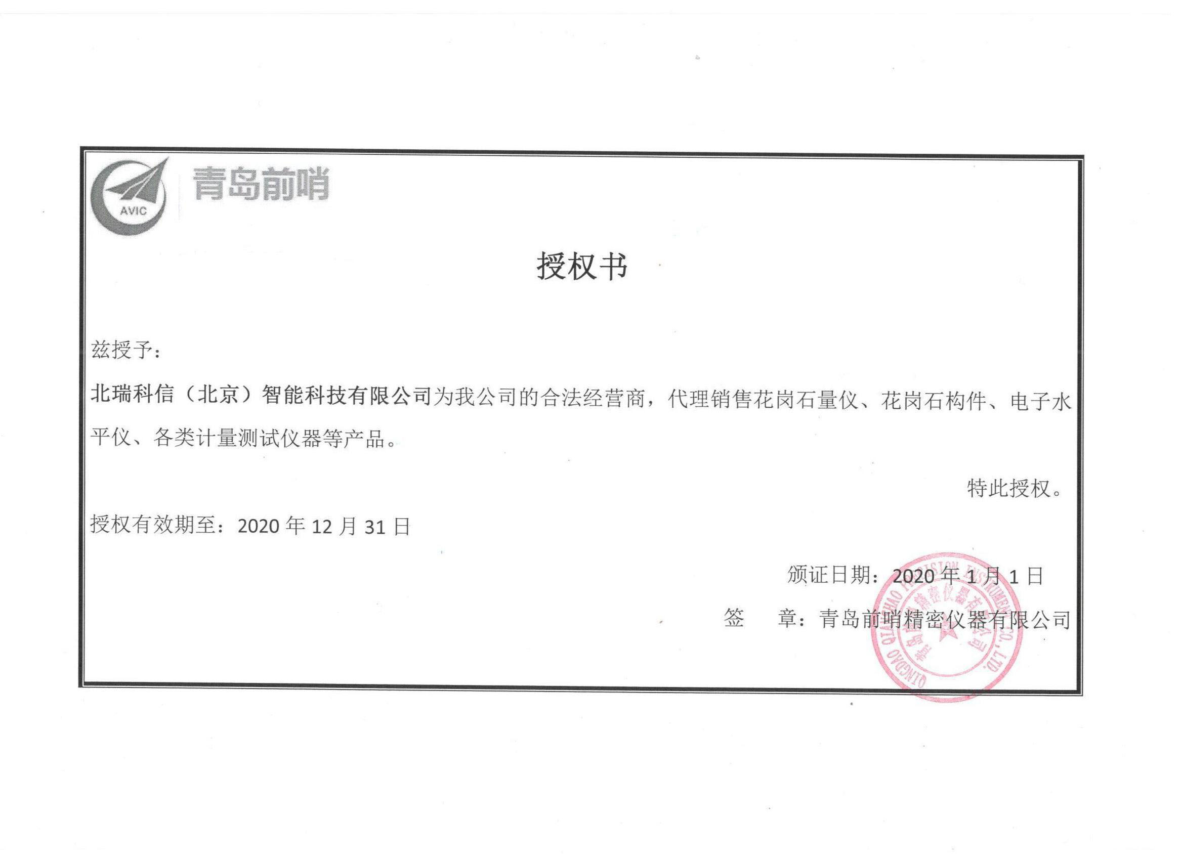• 青島前哨授權(quán)證書