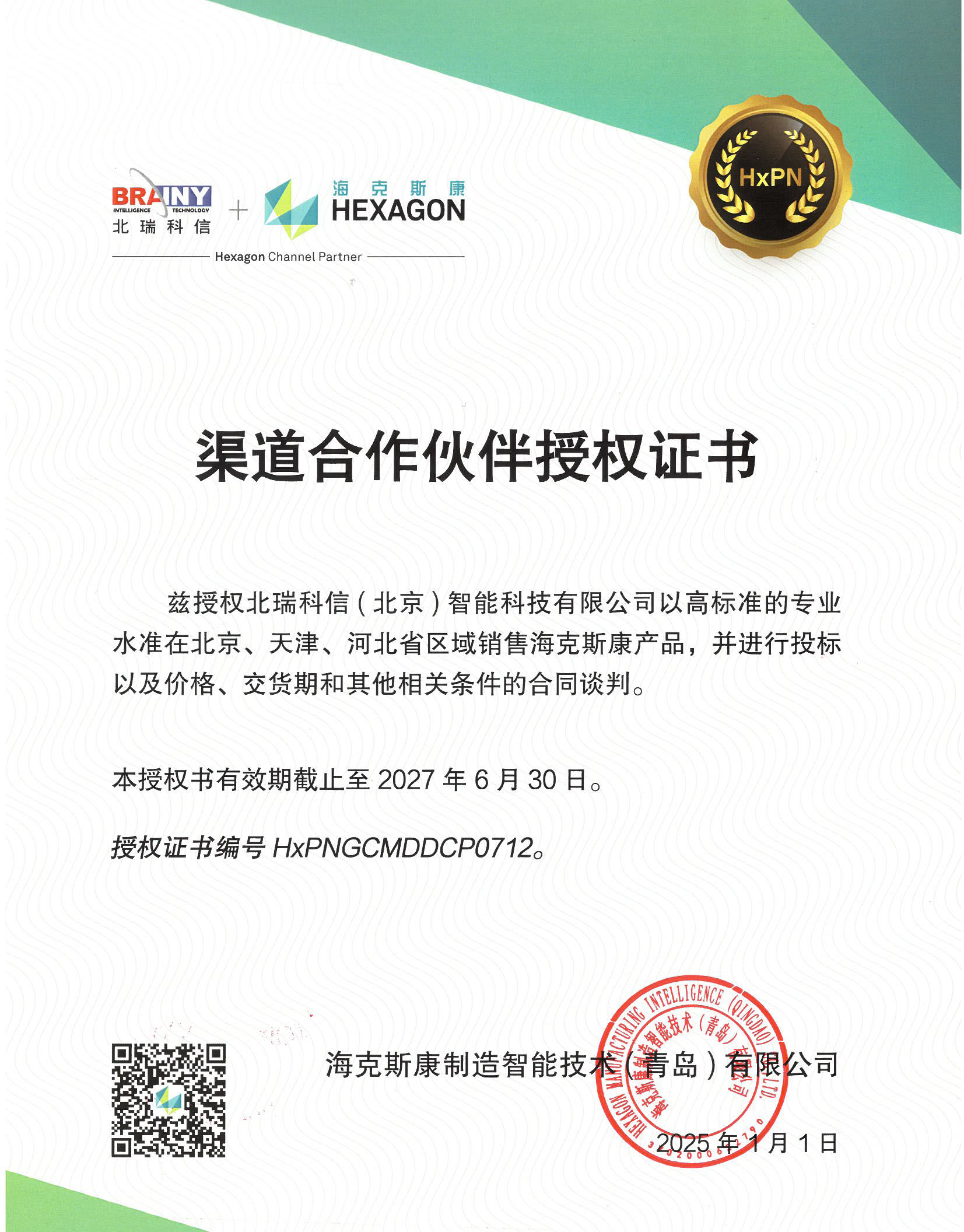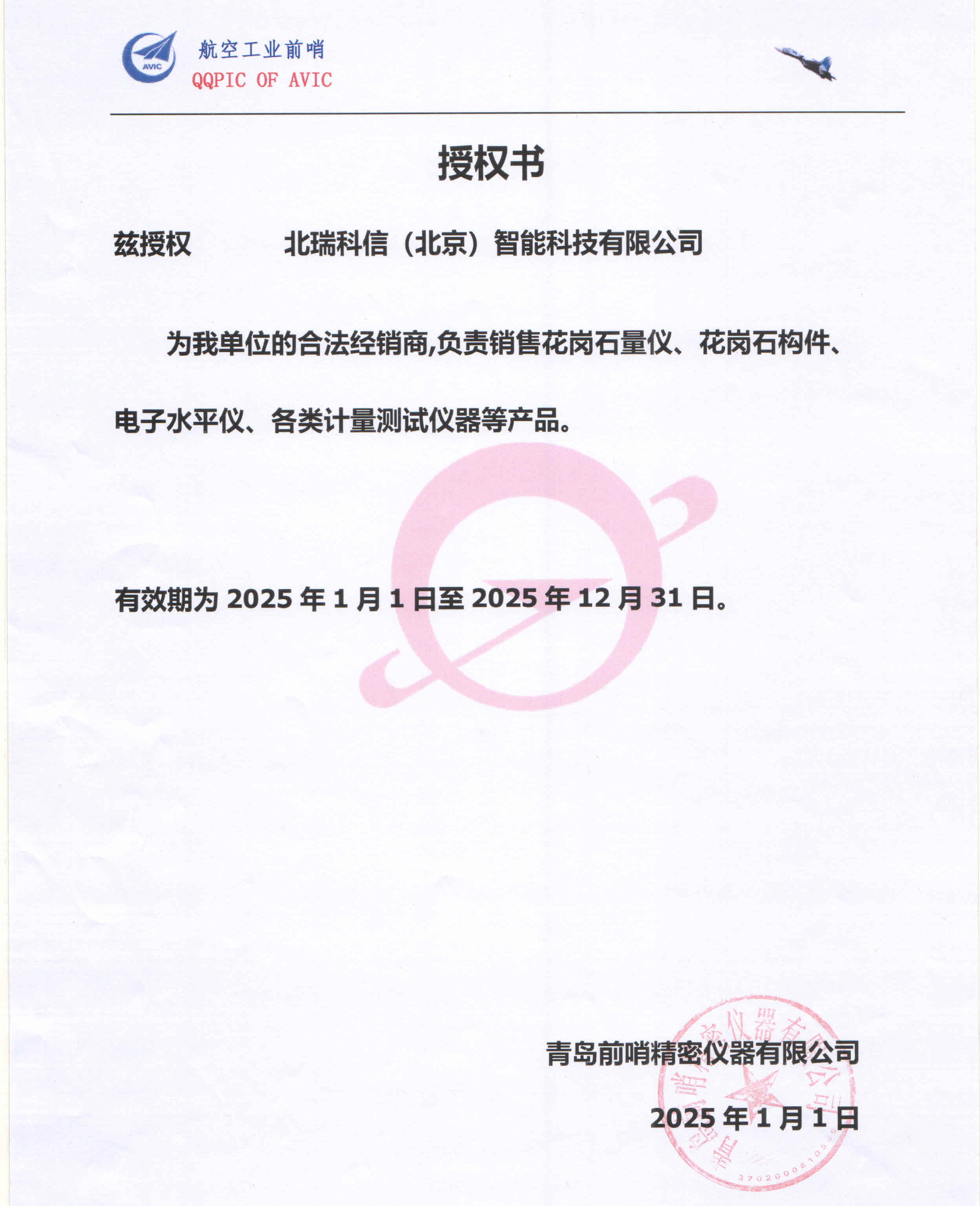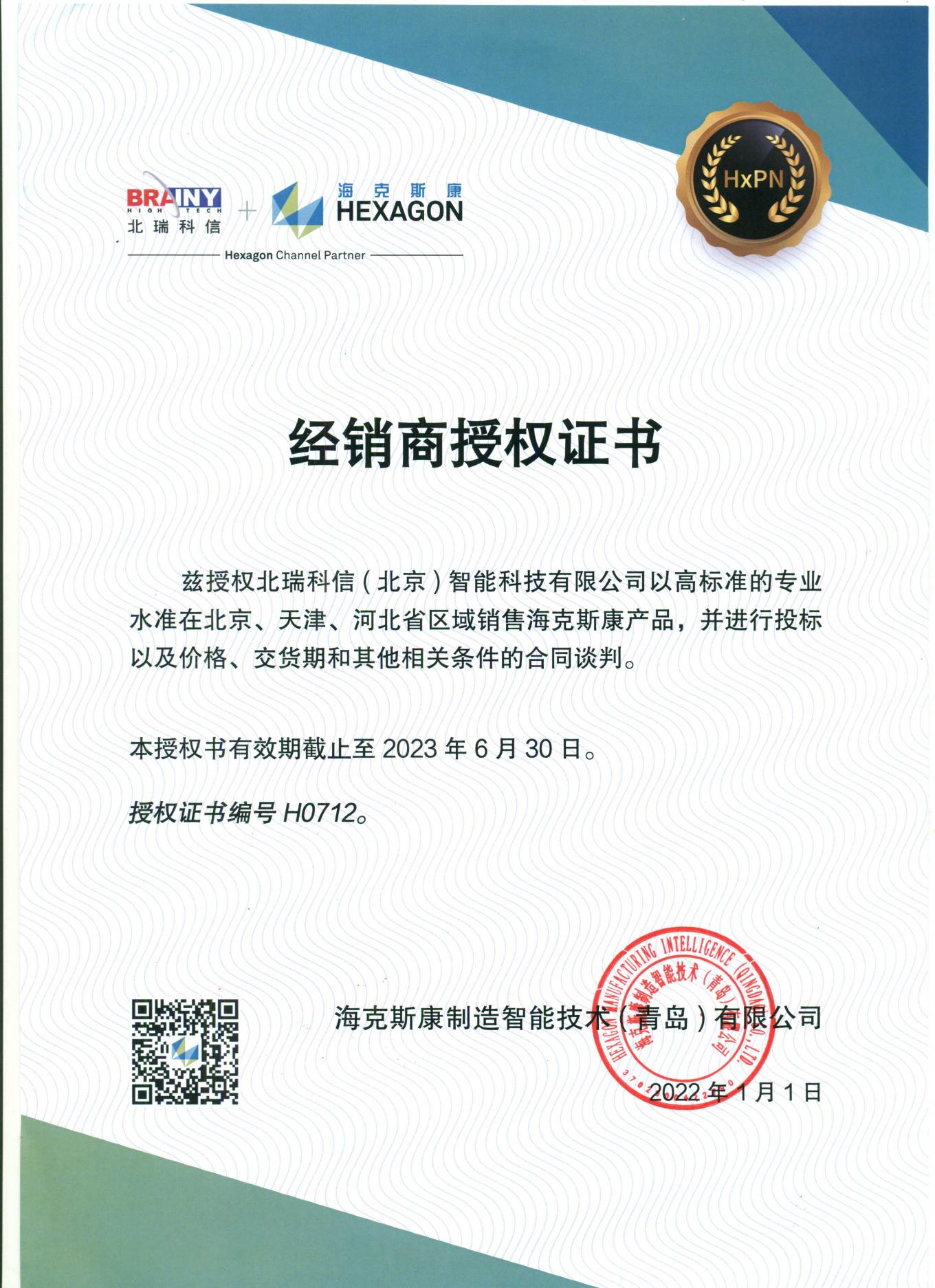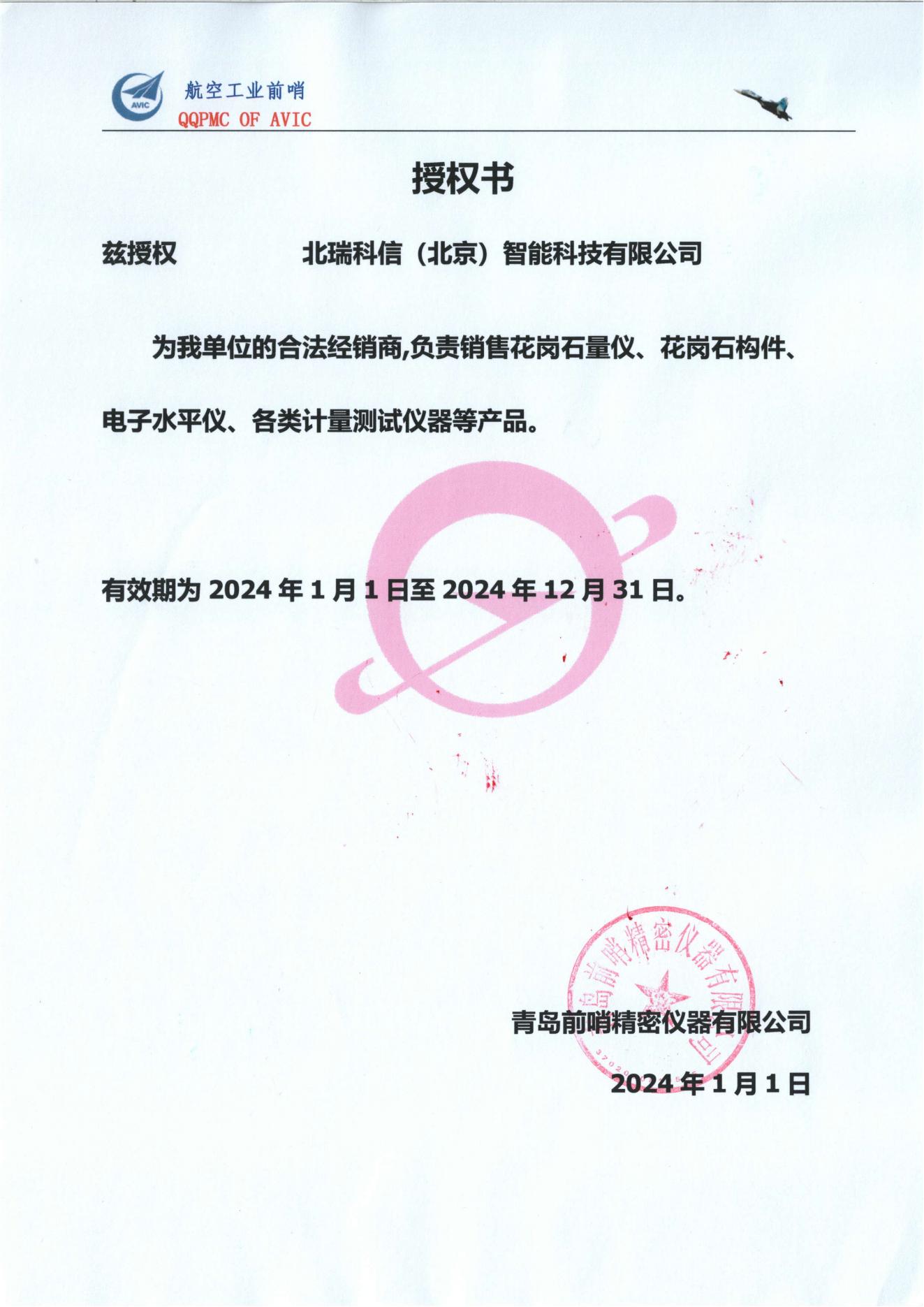 • 青島前哨授權(quán)證書