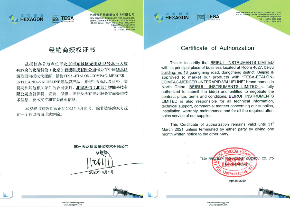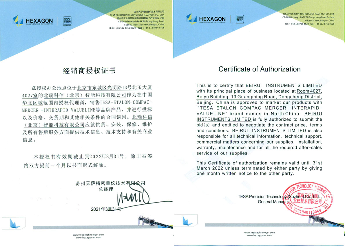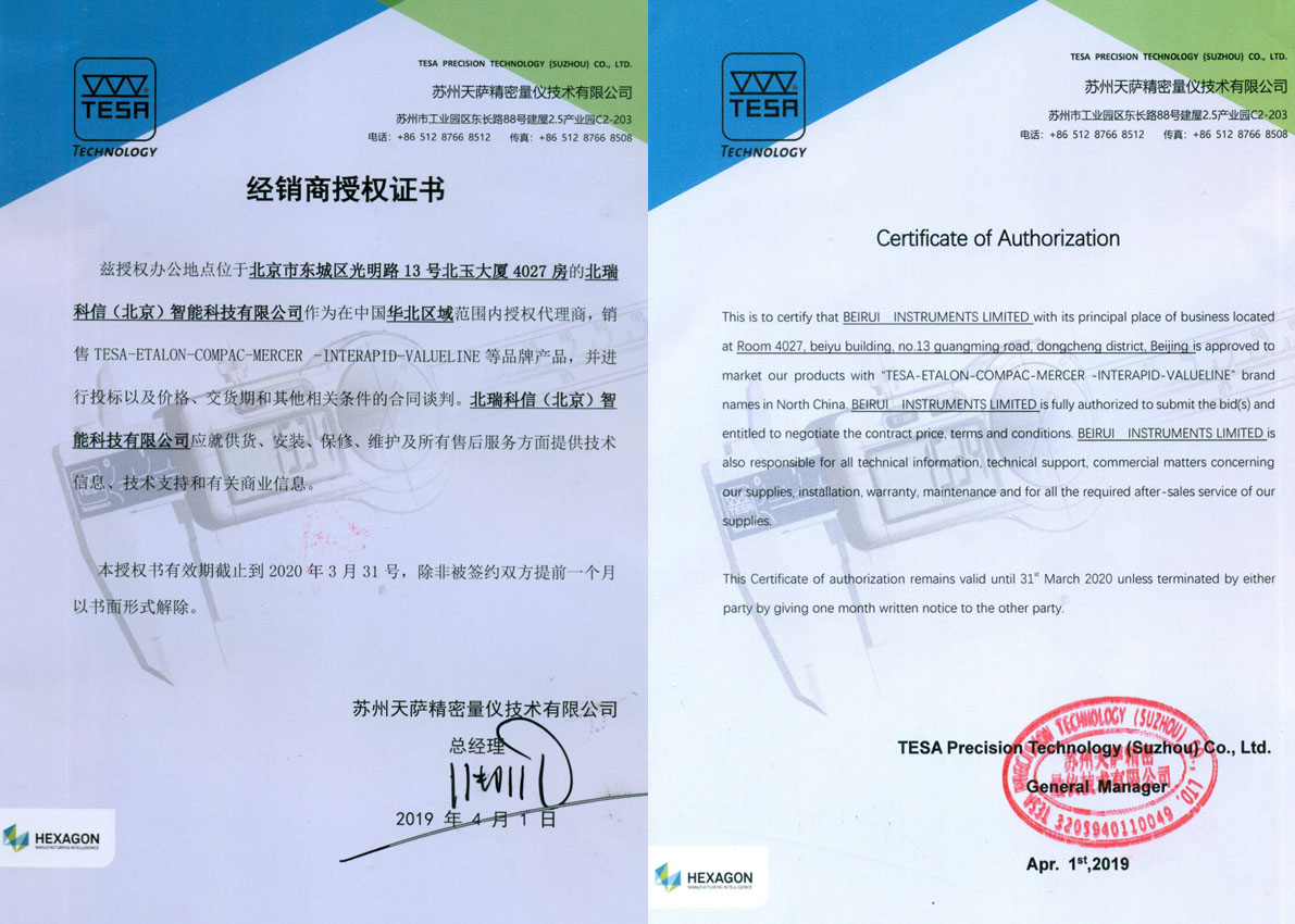 • TESA授權(quán)證書