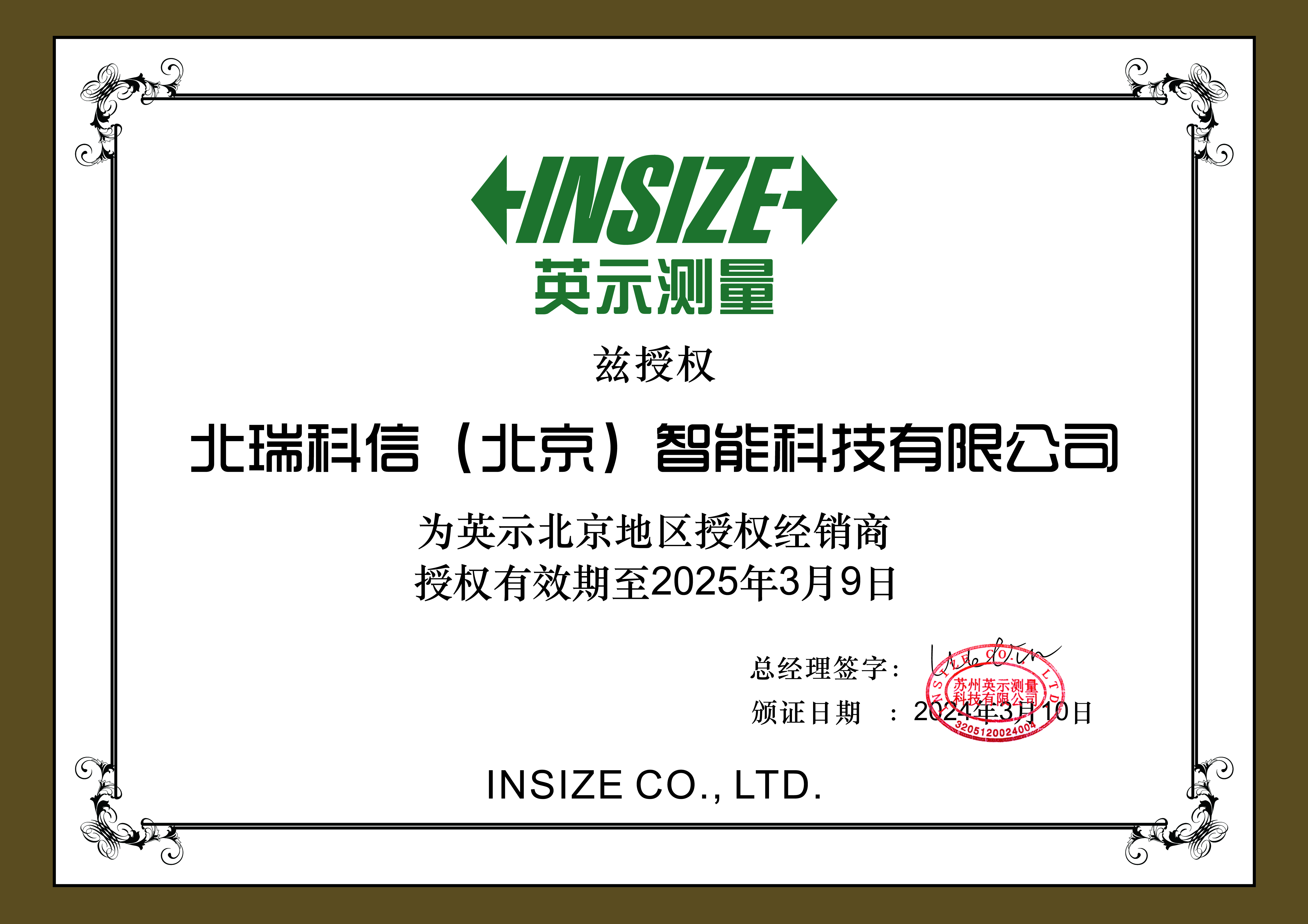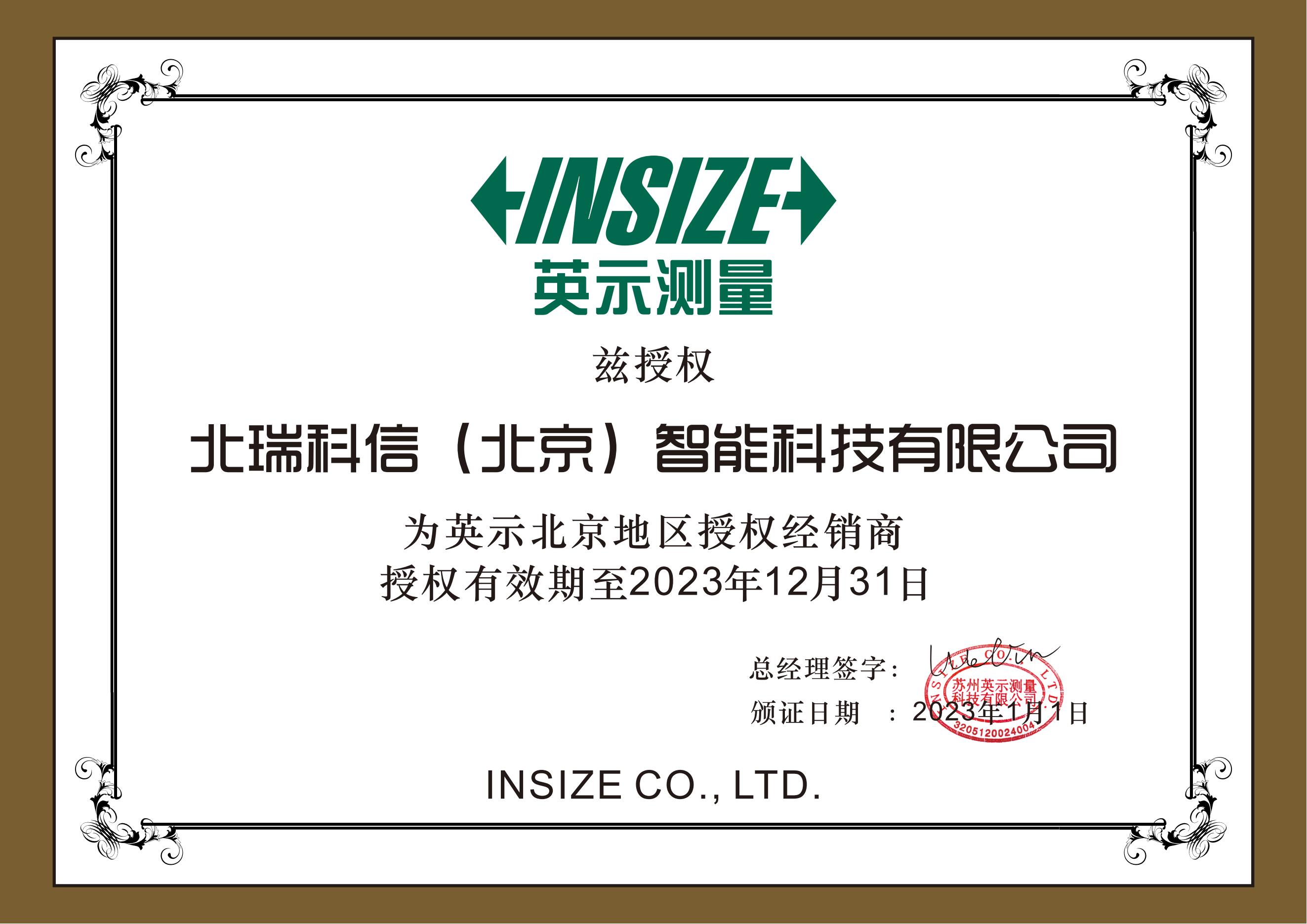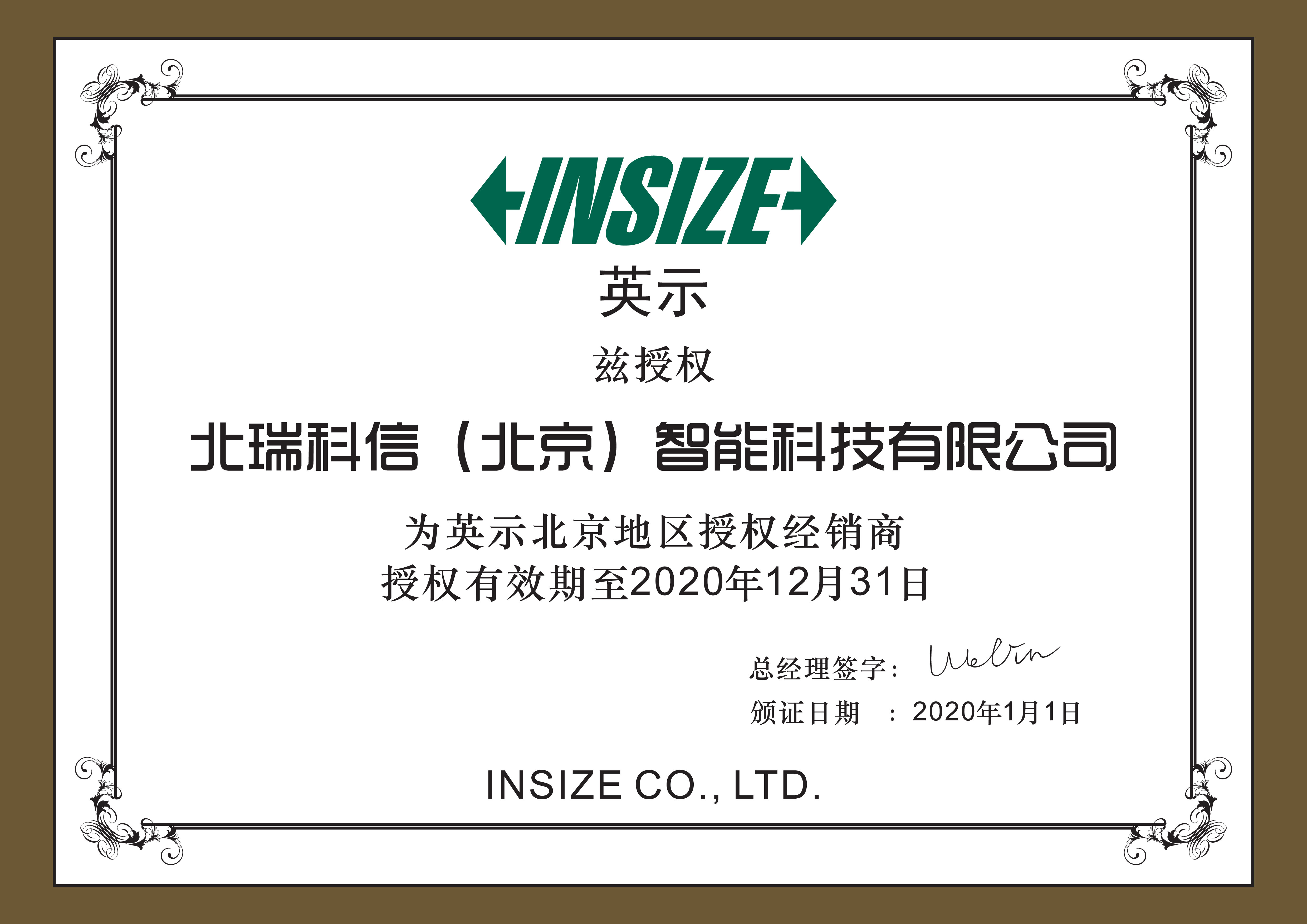 • 英示授權(quán)證書