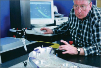 有十年的時(shí)間,A & M公司采用一臺(tái)手動(dòng)測(cè)量機(jī)完成有嚴(yán)格公差要求的工件。無論如何,采用手動(dòng)的方法進(jìn)行計(jì)量工作是一件非常費(fèi)時(shí)的檢測(cè)方法。對(duì)于一些這樣的工件,需要檢測(cè)上百個(gè)點(diǎn)---對(duì)于手動(dòng)測(cè)量機(jī)來說,明顯不能有效完成任務(wù)。