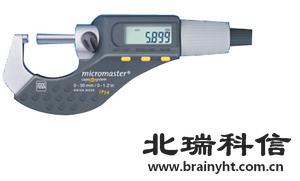 (2)電子外徑千分尺 如數(shù)顯外徑千分尺。也叫數(shù)顯千分尺,測量系統(tǒng)中應(yīng)用了光柵測長技術(shù)和集成電路等。電子千分尺是20世紀70年代中期出現(xiàn)的,用于外徑測量。