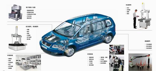 汽車零部件具有品質(zhì)要求高、批量大、形狀各異的特點。根據(jù)不同的零部件特征與測量類型,主要分為箱體、復(fù)雜形狀和曲線曲面三類;按照從材料和加工工藝來分,零部件可以分為薄壁件、機加件、管件、軟質(zhì)件和電子類部件。根據(jù)不同種類零部件不同特征類型的不同檢測需求,可選擇不同的方案。
