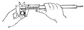 (2) 游標(biāo)卡尺的握持方法:測(cè)量時(shí),右手拿住尺身,大拇指移動(dòng)游標(biāo),左手拿待測(cè)外徑(或內(nèi)徑)的物體,使待測(cè)物位于外測(cè)量爪之間,當(dāng)與量爪略帶磨擦力相貼時(shí),即可讀數(shù)。