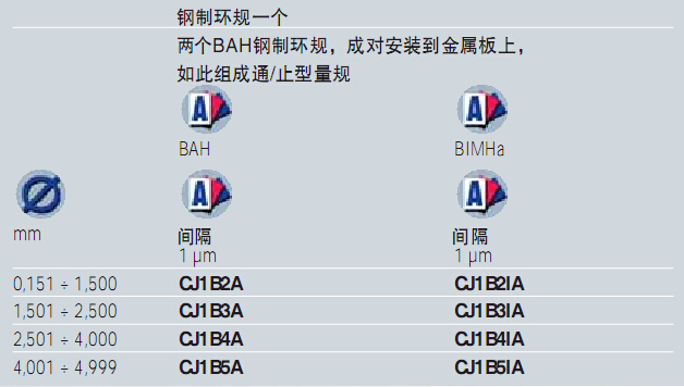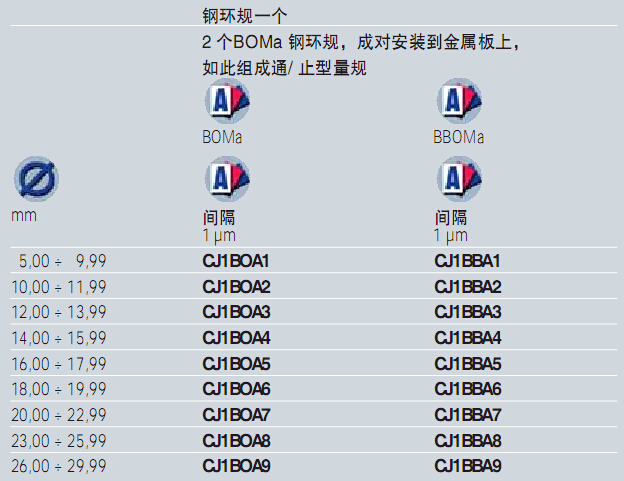 TESA CARY 鋼制環(huán)規(guī),直徑從0.151到5mm