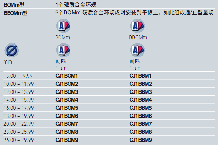 TESA CARY 硬質(zhì)合金環(huán)規(guī),直徑從0.060到5mm
