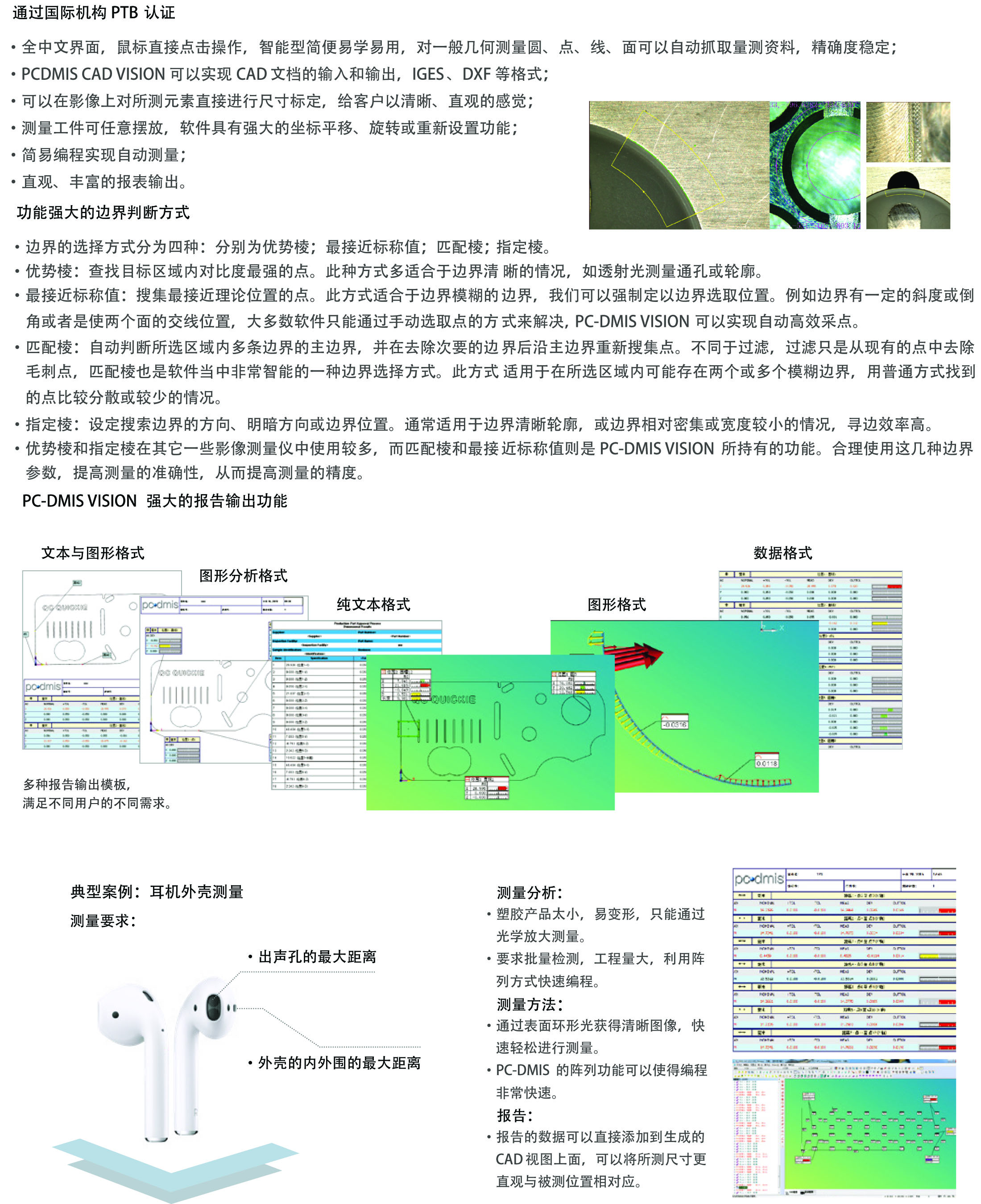 PC-DMIS VISION 是??怂箍禐橛跋駵y量機用戶打造的復合測量軟件。它秉承了計量軟件PC- DMIS 的核心技術,人性化的操作方法,直觀的操作界面和智能化的特征自動識別功能,該款軟件簡單易學,高效實用,能夠幫助企業(yè)快速提升坐標計量和產(chǎn)品質量控制能力,實現(xiàn)高效快捷的質量檢測和過程控制。
