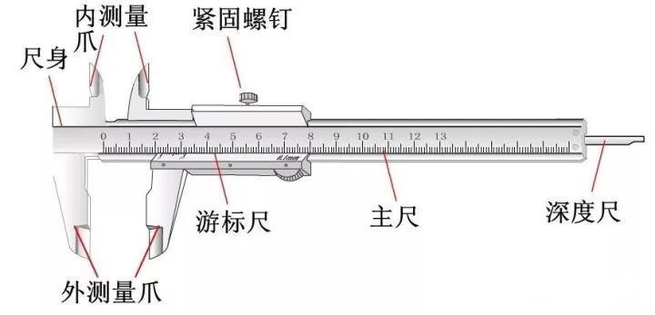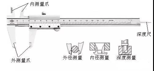 固定卡腳和主尺是一體,活動(dòng)卡腳和副尺是一體,固定螺釘是用來固定副尺的。上卡腳測(cè)量?jī)?nèi)表面,下卡腳測(cè)量外表面。有的游標(biāo)卡尺在主尺背面有深度尺,與活動(dòng)卡腳一齊移動(dòng),可測(cè)量溝槽的深度。