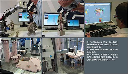 為實現(xiàn)藝術(shù)品的數(shù)字化,可采用Leica 激光跟蹤儀以及一臺Leica T-Scan 手持式掃描儀配合進行工作,該系統(tǒng)能夠每秒鐘掃描7,000點,即使是在處理一些困難的特征,比如白或黑的表面和在標準的光照環(huán)境下。相對小一些尺寸的雕像,可以采用關(guān)節(jié)臂測量機配備非接觸激光掃描頭的方法。對于尺寸相對比較小的物體,也可以采用關(guān)節(jié)臂配備激光掃描測頭,以獲取快速靈活的大量數(shù)據(jù)采集。