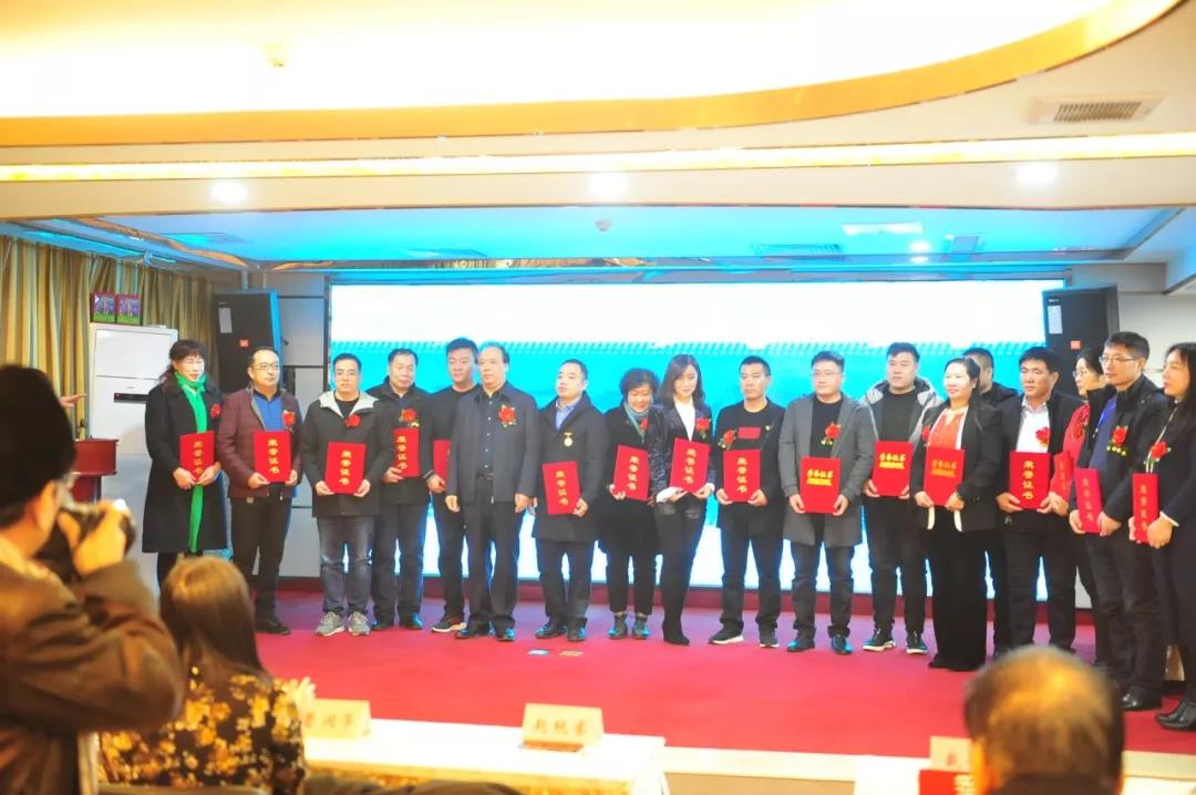 ▲曹潤亭為新任會長戴賀平頒發(fā)證書